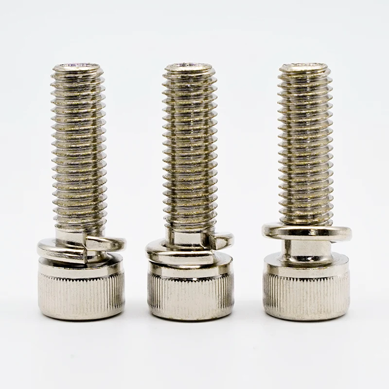 Automaattisilla kokoonpanolinjoilla valmiiksi asennettujen ruuvien käyttö voi parantaa merkittävästi tuotannon tehokkuutta, säästää työtunteja ja vähentää virhetasoa. Erittäin lujat nikkelipinnoitetut kuusiokantaruuvit jousialuslevyillä läpikäyvät vedynpoistokäsittelyn, mikä eliminoi vedyn haurastumiseen liittyvät ongelmat. Koska ne on esiasennettu ja sitten galvanoitu, ruuvi, jousialuslevyt ja niiden kosketuskohdat ovat kaikki pinnoituksen peitossa, mikä muodostaa yhtenäisen kokonaisuuden. Nikkelipinnoite tarjoaa hyvän ruosteen- ja korroosionkestävyyden ja tasaisen ja kirkkaan ulkonäön. Kun molemmat liitettävät työkappaleet ovat kovia, litteitä materiaaleja, jotka eivät ole herkkiä pintavaurioille, nikkelipinnoitetut kuusiokantaruuvit jousialuslevyillä estävät tehokkaasti löystymisen ja parantavat estetiikkaa. Skenaarioissa, joissa vaaditaan perustavanlaatuisia löystymisenestotoimenpiteitä ja ulkonäön priorisointia, se tarjoaa integroidun ratkaisun.